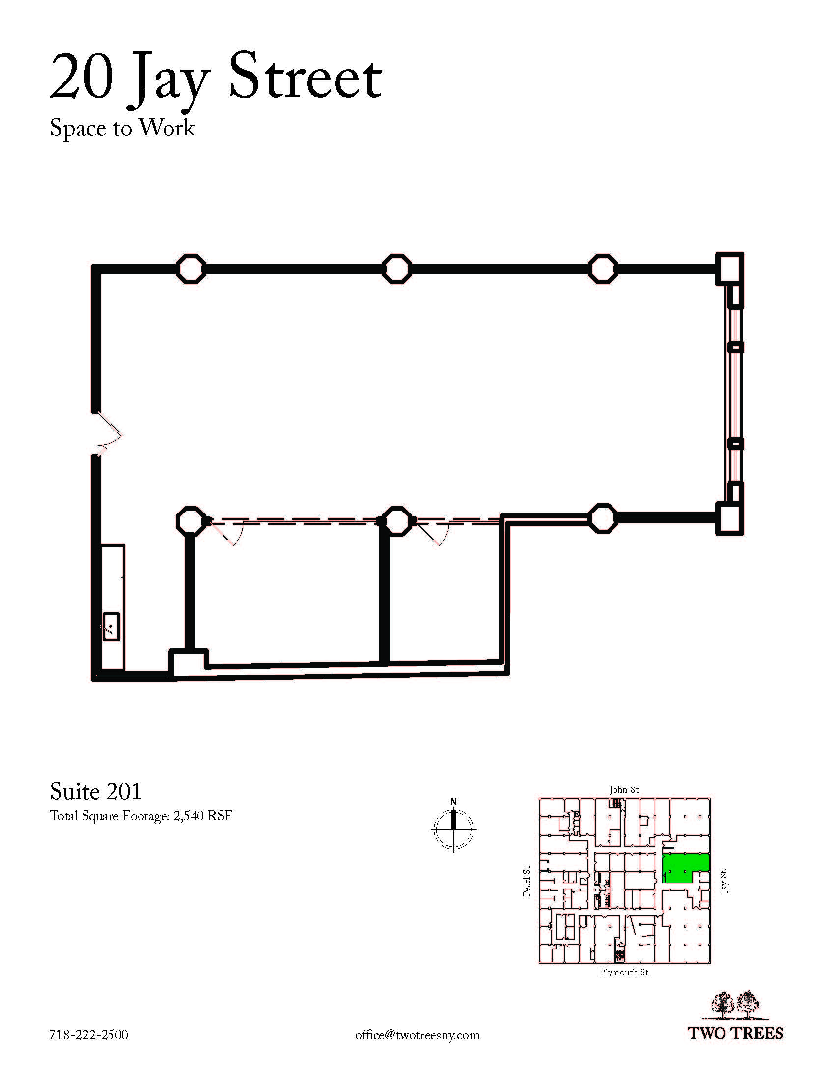 Located just north of the Manhattan Bridge and steps from the F train, 20 Jay Street reflects the creative spirit of DUMBO. One of Two Trees’ most sought-after addresses, it offers light-filled offices and flexible studios surrounded by the neighborhood’s dynamic community of makers, innovators, and entrepreneurs.