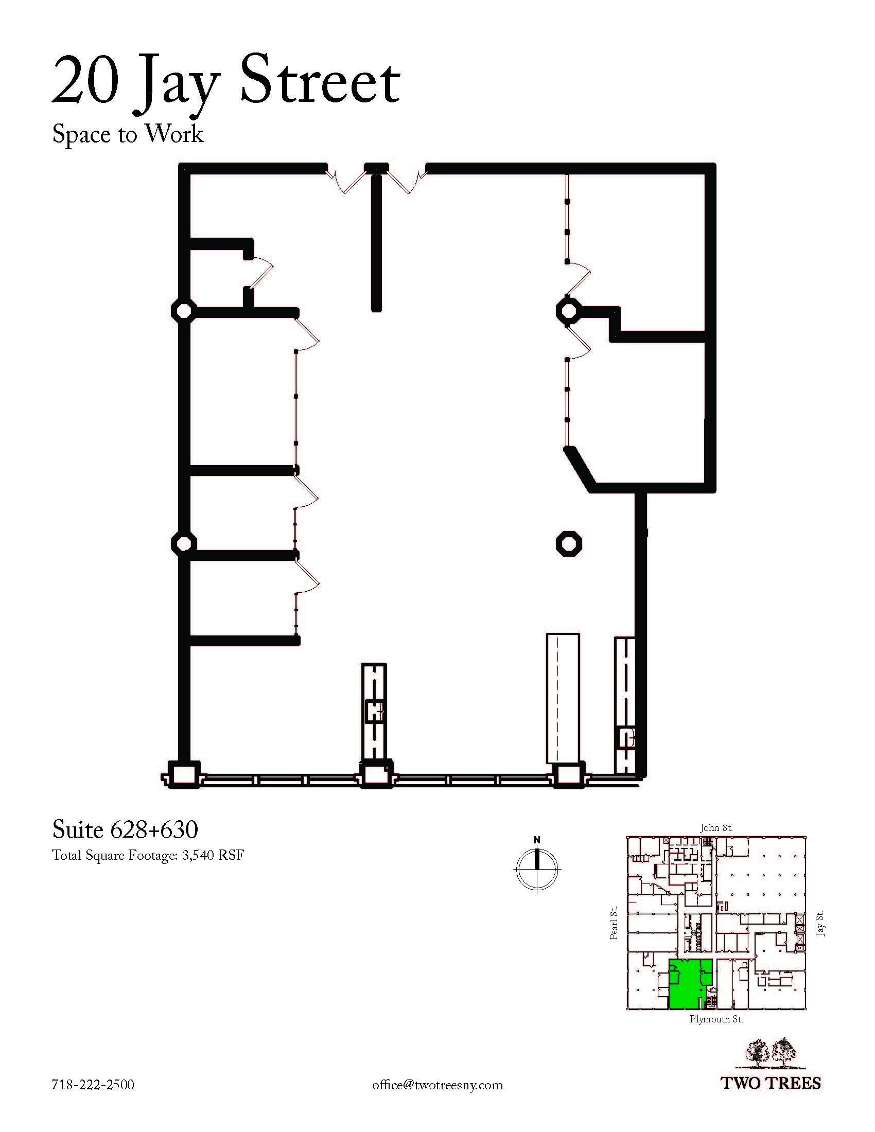 Located just north of the Manhattan Bridge and steps from the F train, 20 Jay Street reflects the creative spirit of DUMBO. One of Two Trees’ most sought-after addresses, it offers light-filled offices and flexible studios surrounded by the neighborhood’s dynamic community of makers, innovators, and entrepreneurs.