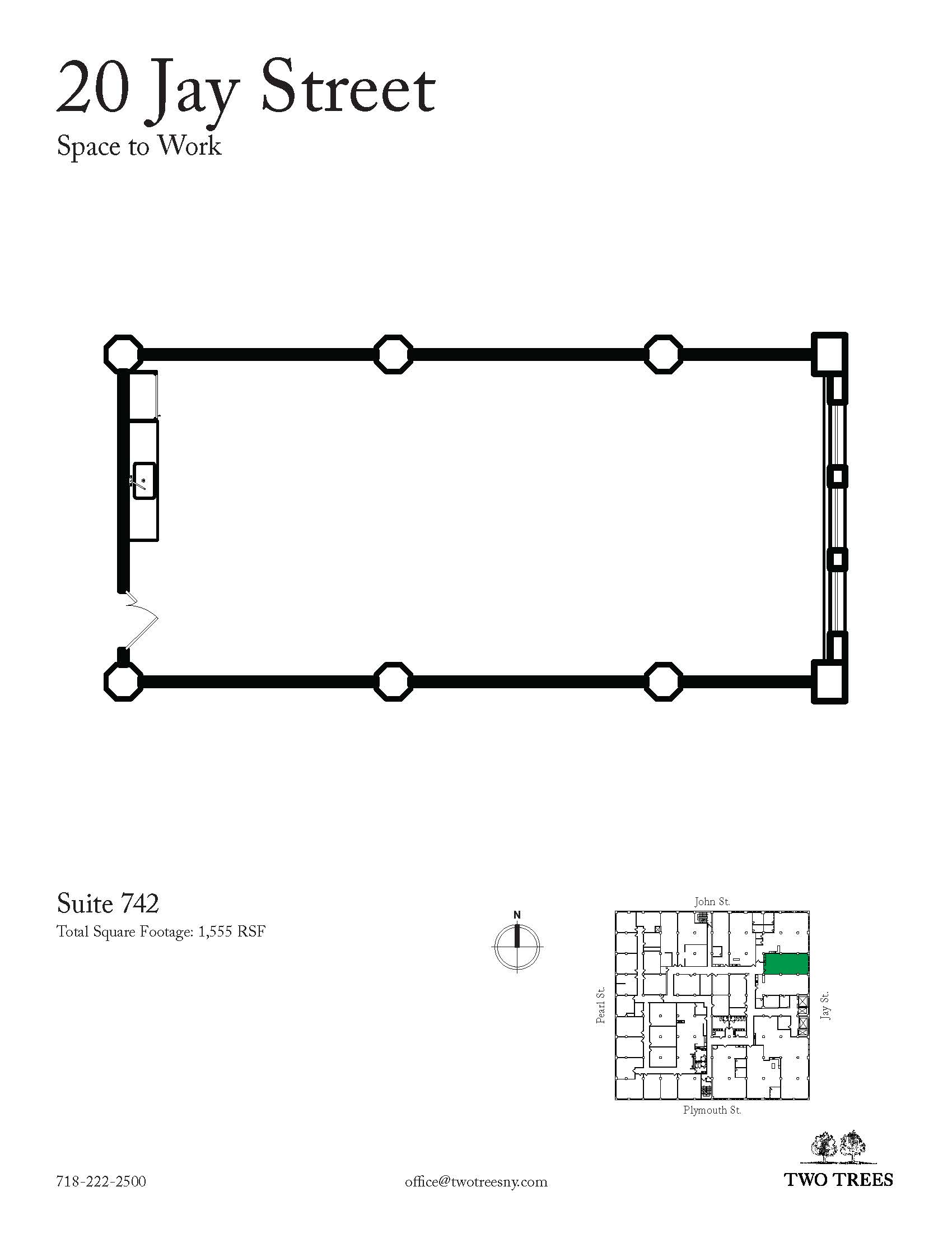 Located just north of the Manhattan Bridge and steps from the F train, 20 Jay Street reflects the creative spirit of DUMBO. One of Two Trees’ most sought-after addresses, it offers light-filled offices and flexible studios surrounded by the neighborhood’s dynamic community of makers, innovators, and entrepreneurs.