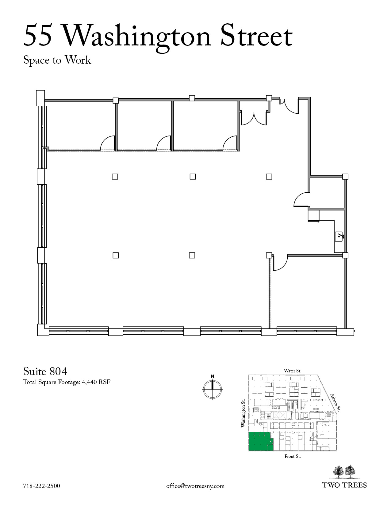 Located on one of Brooklyn’s most picturesque streets, 55 Washington Street is a beautifully restored DUMBO landmark with a newly renovated lobby and a rooftop offering stunning views of the city and waterfront. Its timeless design and thoughtful updates make it a welcoming home for growing companies.