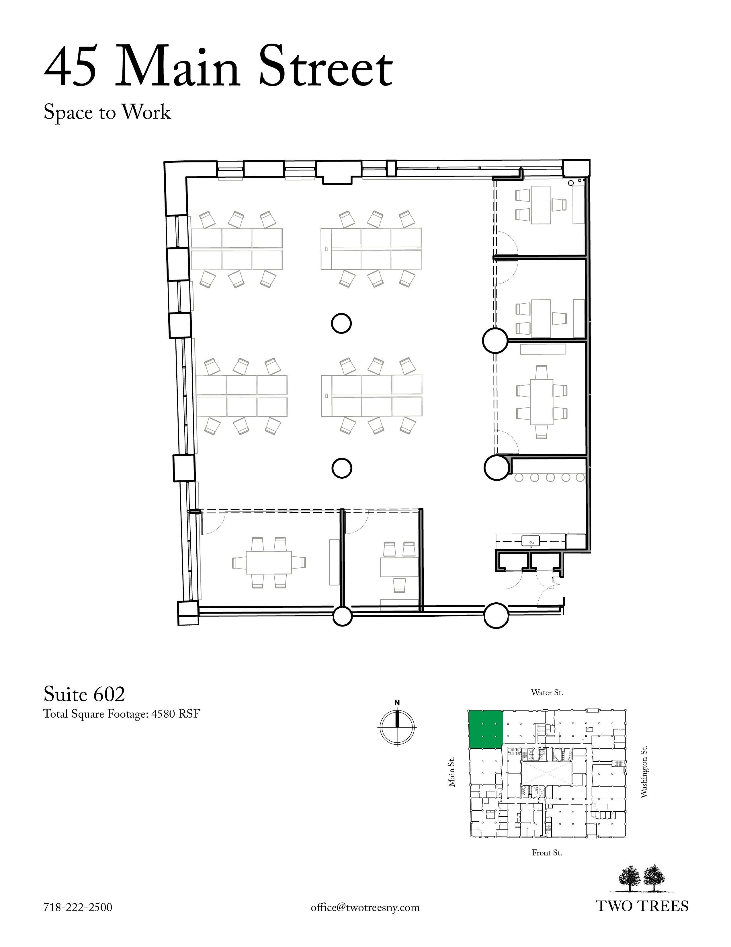 The prime location of 45 Main street is just steps from Brooklyn Bridge Park and the neighborhood’s signature shops and restaurants. The building boasts incredible views and newly renovated offices, with an expansive rooftop terrace that offers generous greenspace with unobstructed views of the Manhattan Bridge and sweeping waterfront.