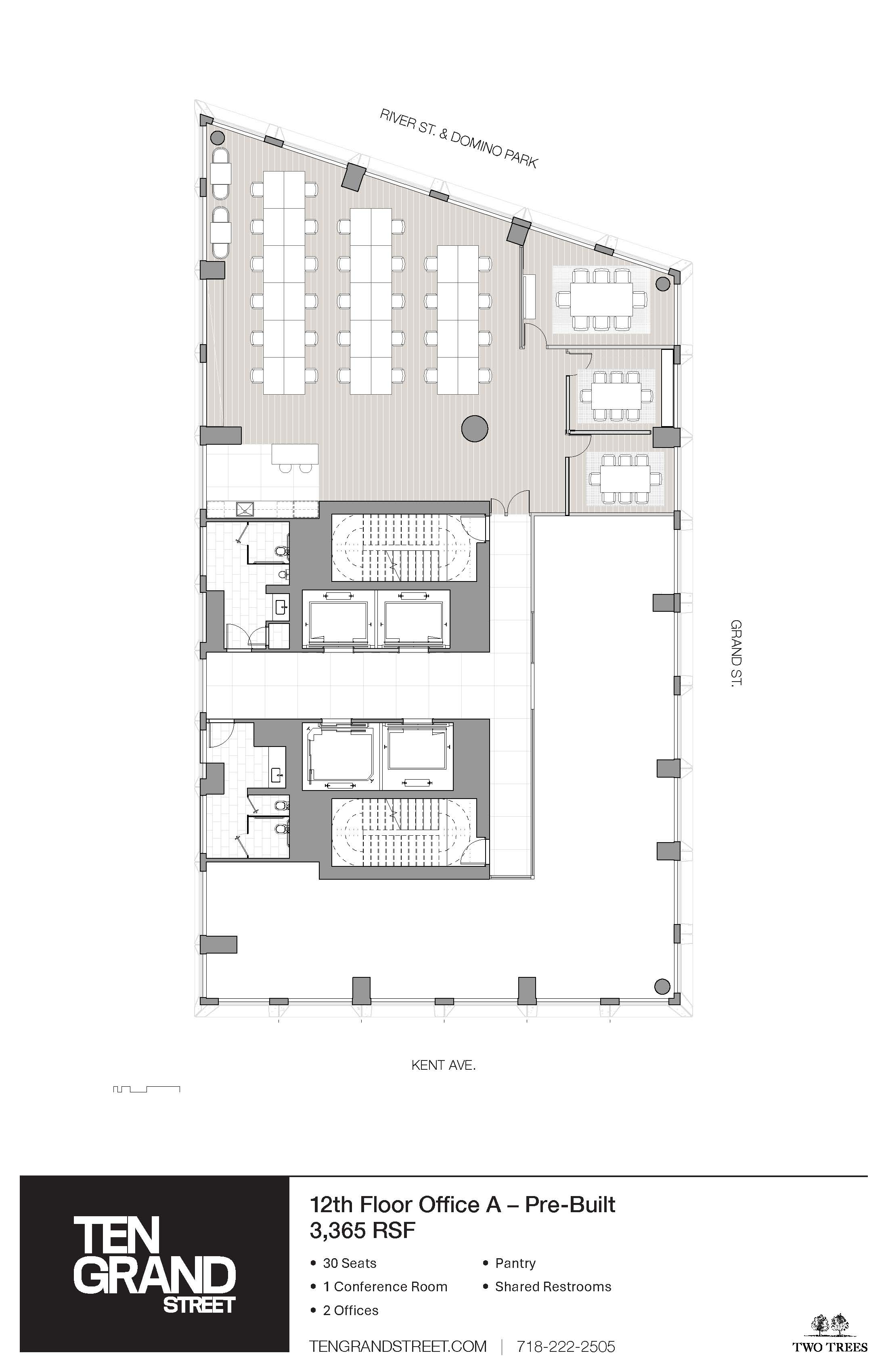 Endless Views, Unlimited Possibilities. Two Trees presents an entirely unique perspective on the modern office – 6,000 RSF single-occupant office floors on Williamsburg’s waterfront overlooking Domino Park. Ten Grand Street features floor-to-ceiling windows, sweeping 360-degree panoramic views and exceptional amenities.