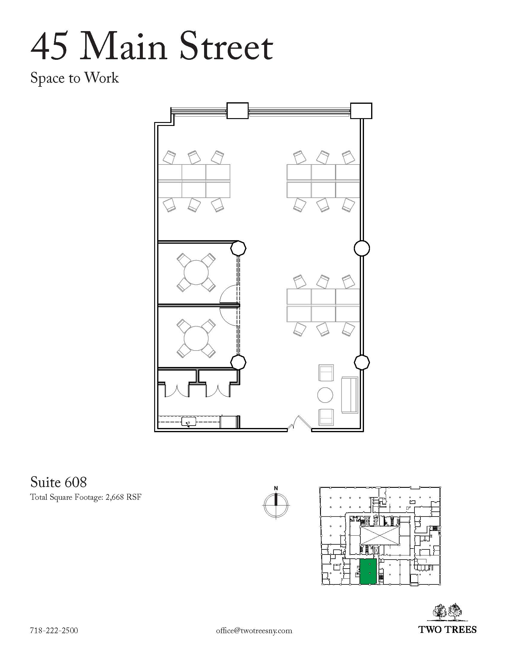 The prime location of 45 Main street is just steps from Brooklyn Bridge Park and the neighborhood’s signature shops and restaurants. The building boasts incredible views and newly renovated offices, with an expansive rooftop terrace that offers generous greenspace with unobstructed views of the Manhattan Bridge and sweeping waterfront.